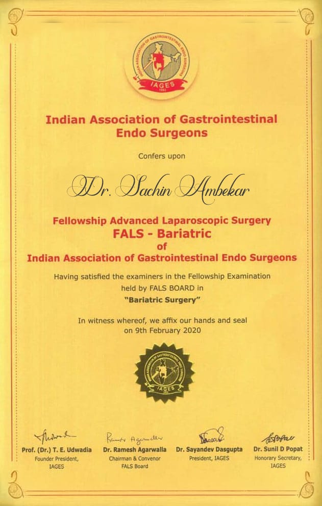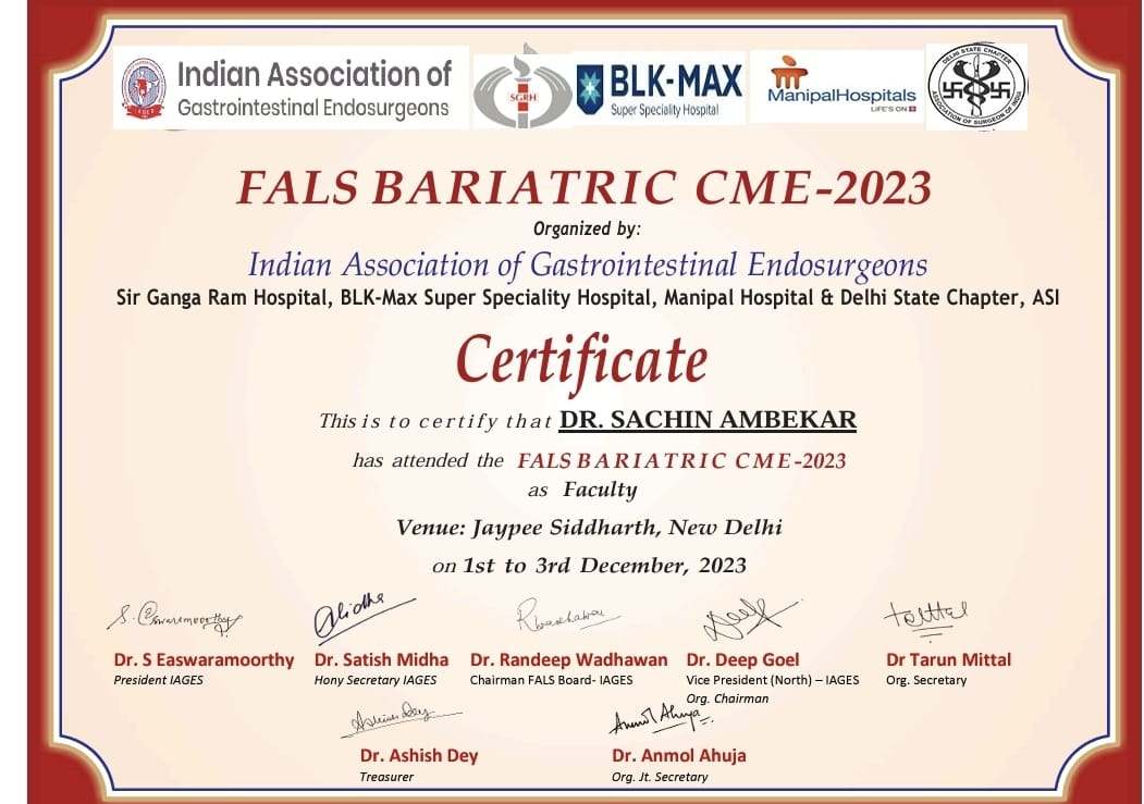 Dr. Sachin Ambekar is a renowned bariatric and laparoscopic surgeon with over 24 years of experience. He is recognized for his exceptional surgical expertise, precision, and innovative approach in advanced 3D laparoscopic procedures. Widely recognised for his expertise in weight loss and metabolic surgery, he has helped thousands of patients overcome obesity and related conditions such as diabetes, hypertension, PCOS, and joint disorders, enabling them to regain confidence, mobility, and long-term health.